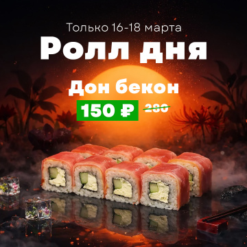 Оформляя заказ в Яху с 16 по 18 марта от 699Р получаете роллы со скидкой, а именно: