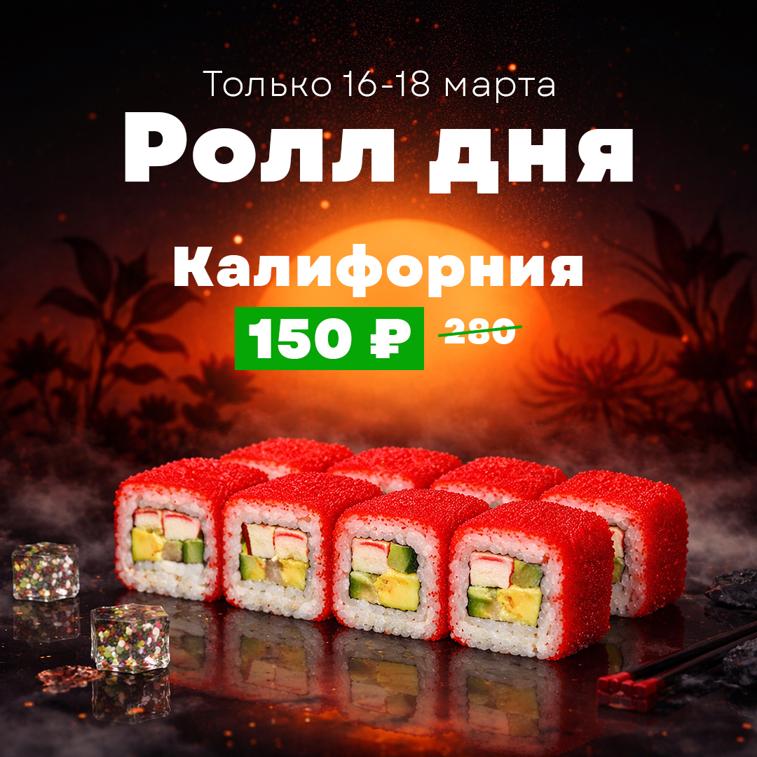 Оформляя заказ в Яху с 16 по 18 марта от 699Р получаете роллы со скидкой, а именно: